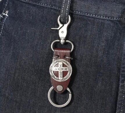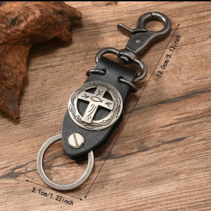 LLAVERO COLGANTE CUERO GENUINO CRUZ